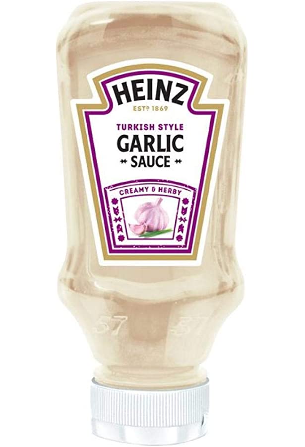 Heinz Garlic Sauce TD 220ml. Heinz Garlic Sauce is a perfectly creamy sauce with the addition of garlic and chopped herbs. It goes well with fried meats and fish, but also with grilled dishes. It will enrich the taste and give juiciness to every dish.
