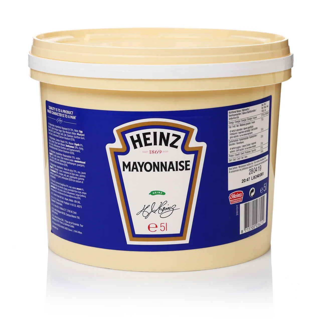 Heinz Mayonnaise 5L bucket – Mayonnaise is suitable for salads and all types of meat and sausages, fish, chips, pasta, rice or as a marinade ingredient.